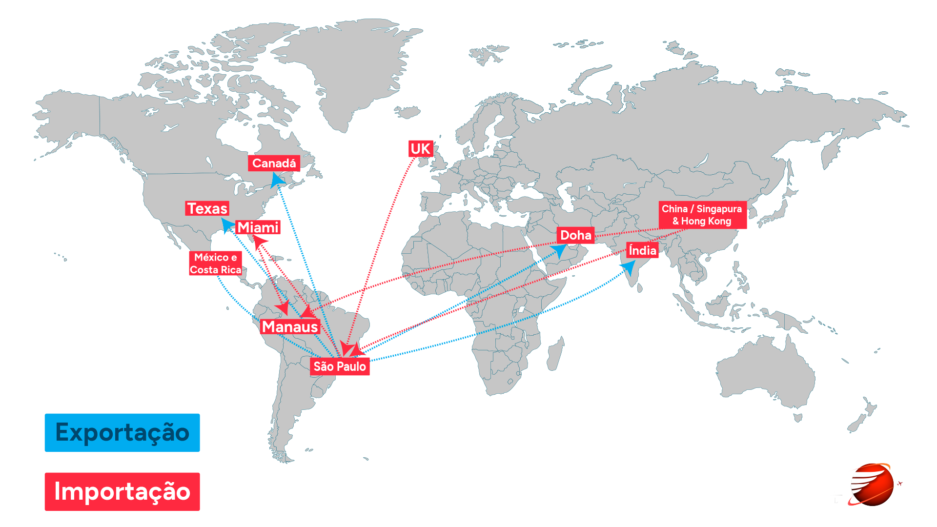 Além disso, possuímos escritório no complexo aeroportuário de Miami, o que fornece uma conexão agilizada e privilegiada ao maior hub das Américas.